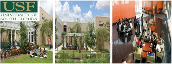 사우스플로리다대학 USF(University of South Florida)는 플로리다 탬파(Tampa, FL)에 위치한1956년에 설립된 주립대학으로 탬파 다운타운과는 차로 20분 정도의 거리에 위치해 있습니다. 재학생이 4만 명이 넘는 대규모 종합대학입니다. 이는 미국 전체 공립대학 중 8번째로 큰 규모입니다.