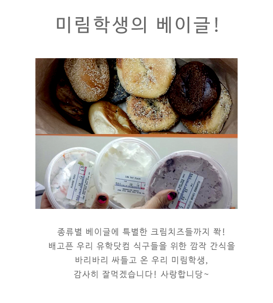 [일상] 베이글 한아름 사오신 우리 미림학생!