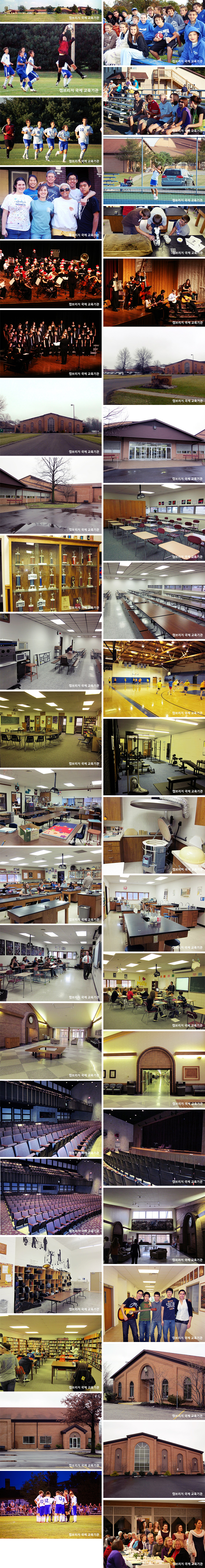 | 학교소개 | Central Christian School은 Kidron에 위치하고 있습니다. 이곳은 여러 주요도시와 오하이오 관광지 등에 이동이 편리한 곳에 위치해있습니다. 학업 프로그램으로는 3개의 AP 과목, 3개의 Dual Enrollment 과목을 제공합니다. Dual Enrollment의 경우 근처 Bluffton University와 함께 대학과정을 제공합니다. 이 수업은 23시간이 가능하며 크레딧 한 시간당 $75 입니다. 수업은 캠퍼스에서 진행됩니다. Technology Students Association으로 60개 이상의 STEM (과학, 기술, 공학, 수학)을 기준으로 하는 대회에 참여할 수 있고, 관련된 리더십 활동과 더 높은 공학 수업을 준비할 수 있도록 돕습니다. 그리고 학생들은 겨울 방학이 끝난 후 해양생물 (Florida Keys), 사진, 정부 활동 및 목공 등 특별 수업을 들을 수 있습니다. 특별 활동으로는 6개의 클럽, 특별활동, 7개의 스포츠 활동에 참여할 수 있습니다. Central Christian School의 학생의 90% 이상은 음악 프로그램에 참여합니다. 이는 두 고등학교 합창단, 대표팀 가수, 오케스트라, 재즈 밴드, Heartland Strings 및 여러 그룹이 있습니다. 대부분의 악기와 성악 개인 레슨은 캠퍼스 내에서 진행됩니다. 모든 초등학교, 중학교 그리고 9학년 학생들은 합창단에 참여해야 합니다. 음악 학과는 오하이오 주에서 우수한 것으로 알려져있고, 미국, 캐나다, 푸에르토리카에 있는 15개의 학교가 함께하는 뮤직 페스티벌에 매년 참가하고 있습니다. SAT 평균점수는 1716점, 상위 30%는 2160점 입니다. 졸업생이 진학한 대학은 다음과 같습니다. University of Virginia, Boston University, Berkeley College of music, Texas Christian University, The Ohio State University-Agricultural Technical Institute, The Ohio State University-Mansfield, University of Cincinnati, Kent State University. |
