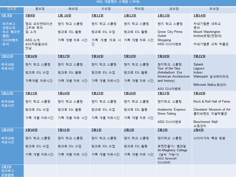 ASG 체험캠프 일정$비용