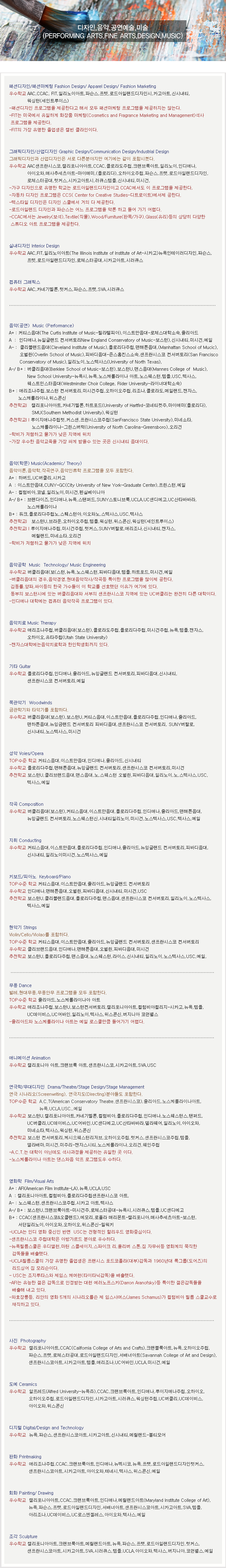 디자인,음악,공연예술,미술